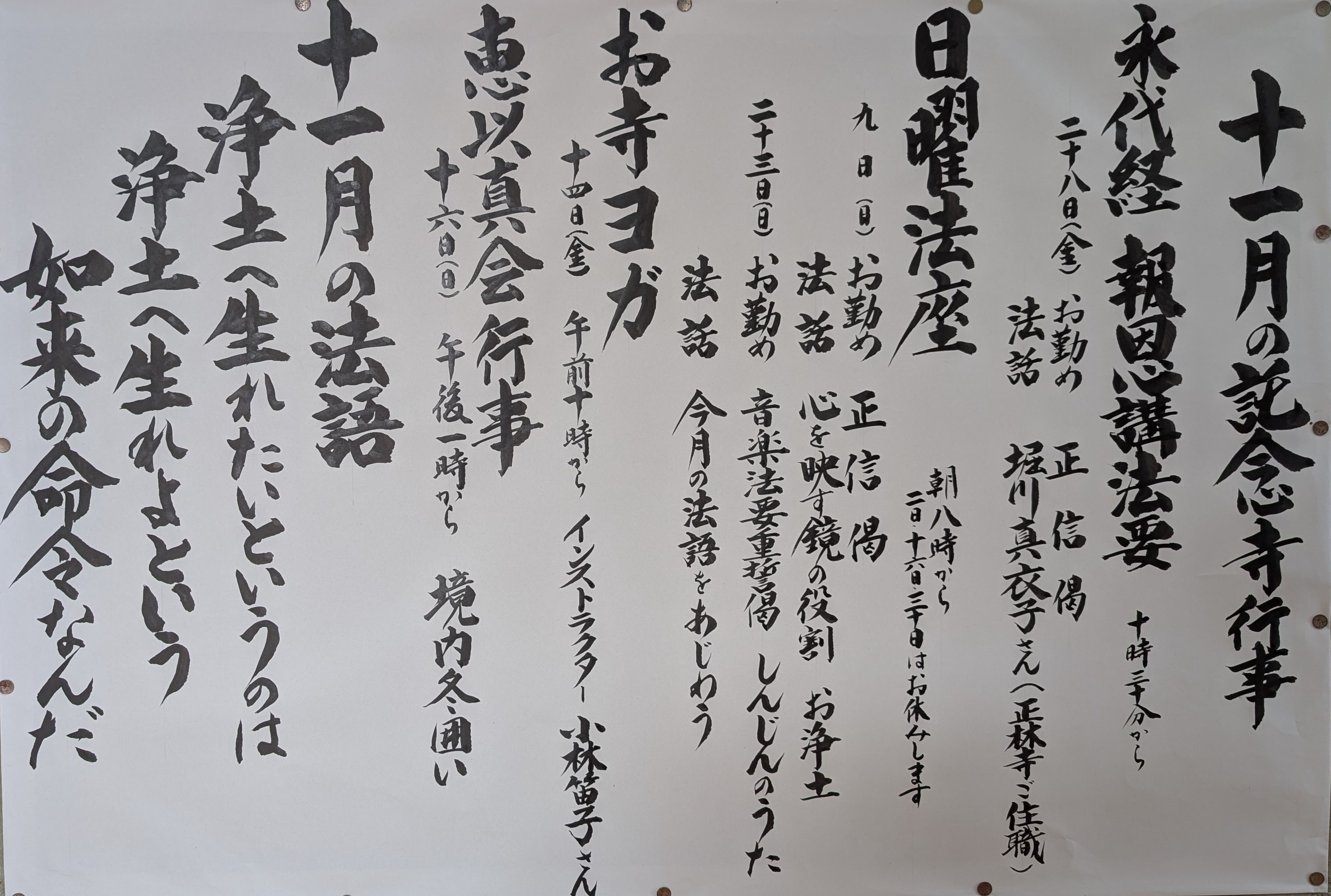 永代経・報恩講法要 11月28日(金)10時30分~ 託念寺本堂