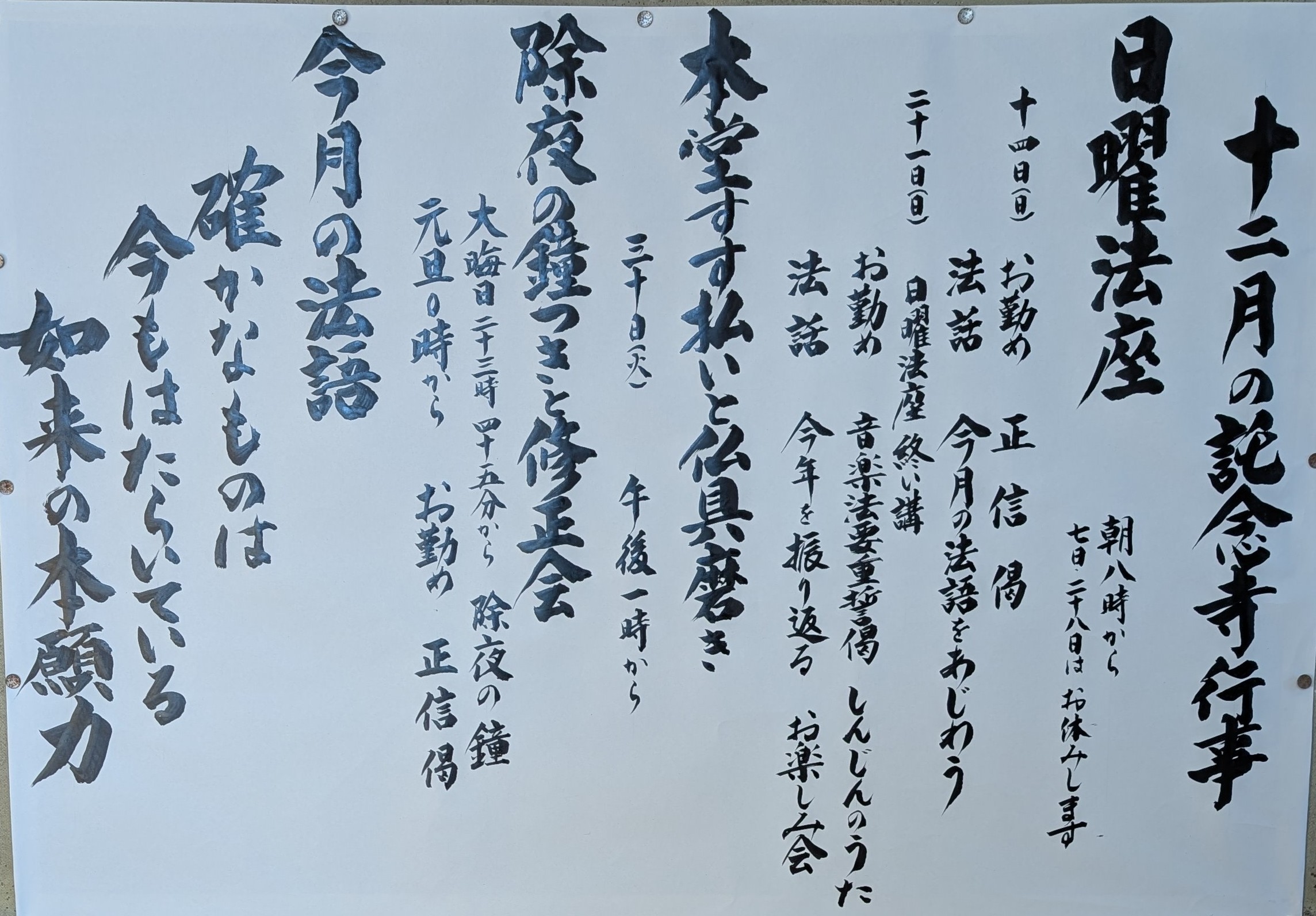 <修正会(しゆしようえ)> 元旦0時から お勤め:正信偈 令和8年最初のお勤めをご一緒にいたしましょう。